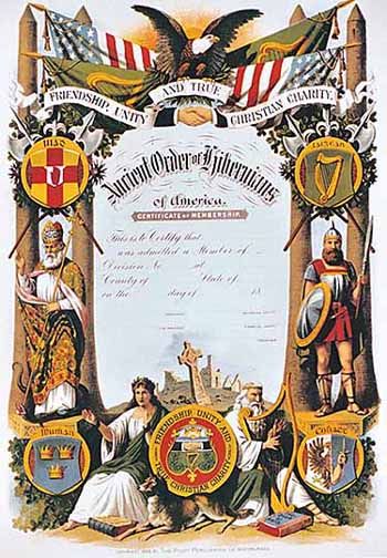 • Irish by birth or descent through either parent, or who is legally adopted, or who is the wife or mother of a member of the Ancient Order of Hibernians in America, Inc. or the mother of a member of the Junior Division of the Ladies Ancient Order of Hibernians.